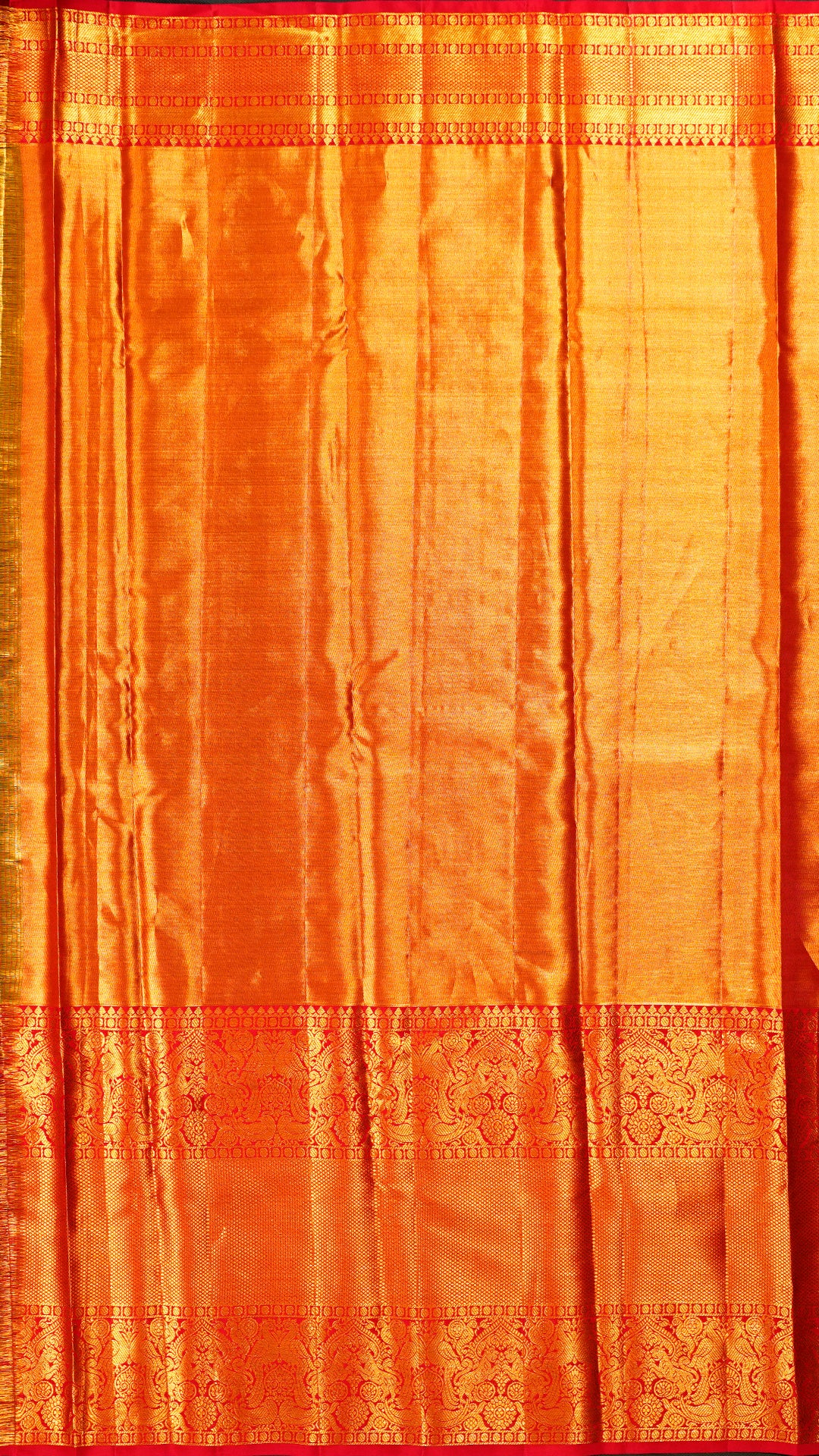 Gold Kanchipattu Silk Saree with Red Zari Border