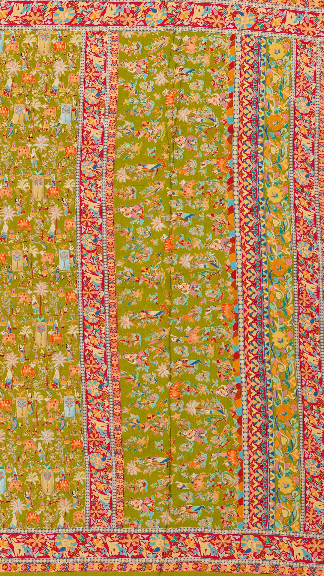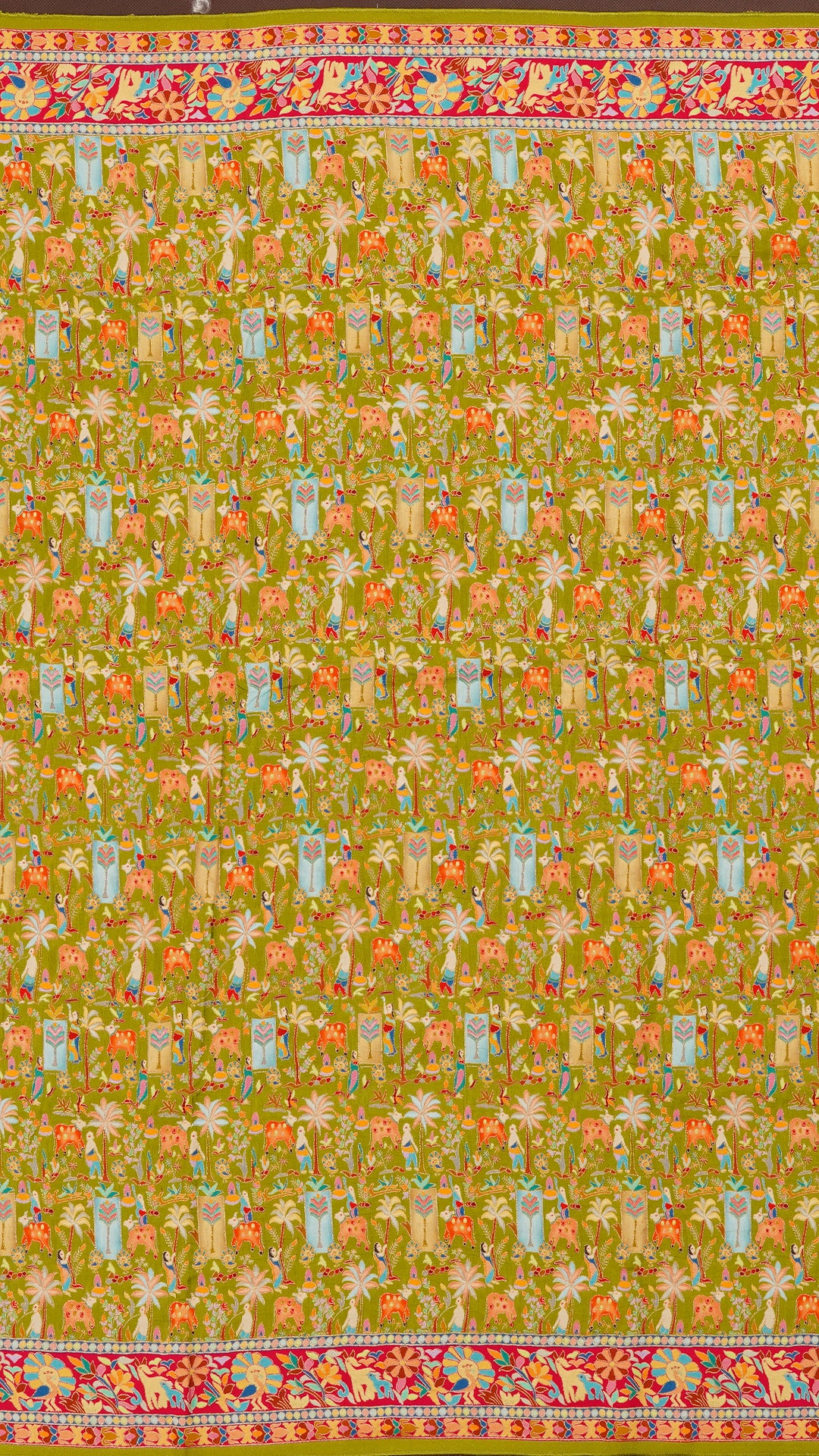 Shop elegant Multi-Colour Crepe Silk Saree featuring self buttes and a contrast thread work border. Perfect for festive wear and special occasions.