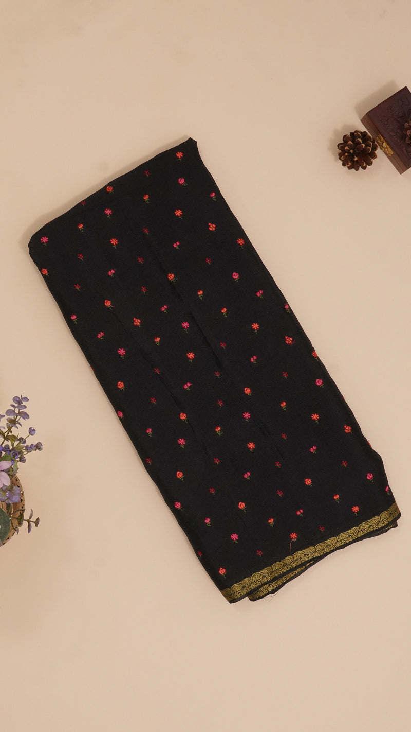 Black Georgette Silk Saree with Small Gold Self Zari Border & Allover Buttas