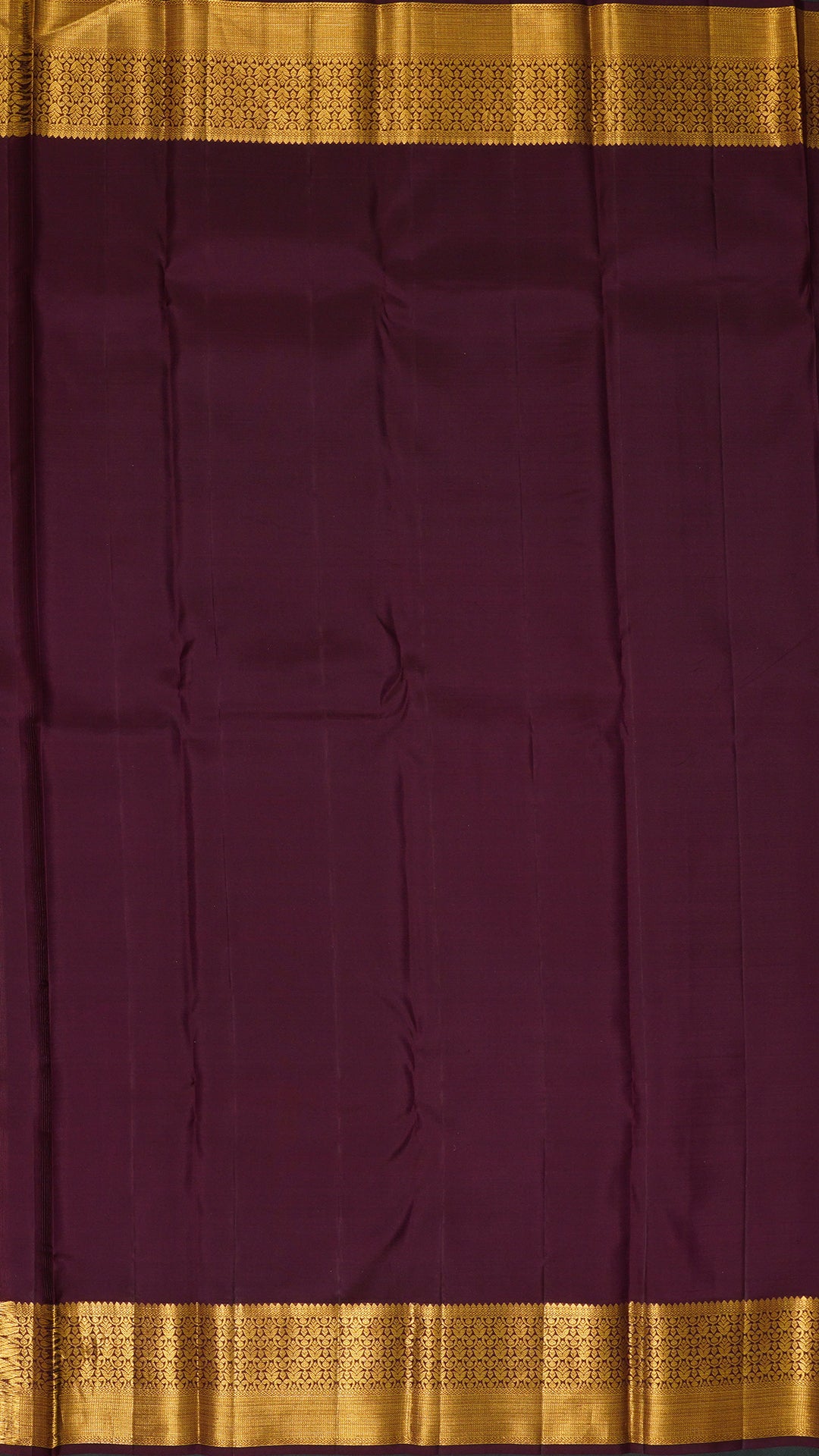 Elegant dual-color Kanchi Pattu silk saree featuring a snuff-shaded zari border and all-over weaving — perfect for weddings and festive celebrations.
