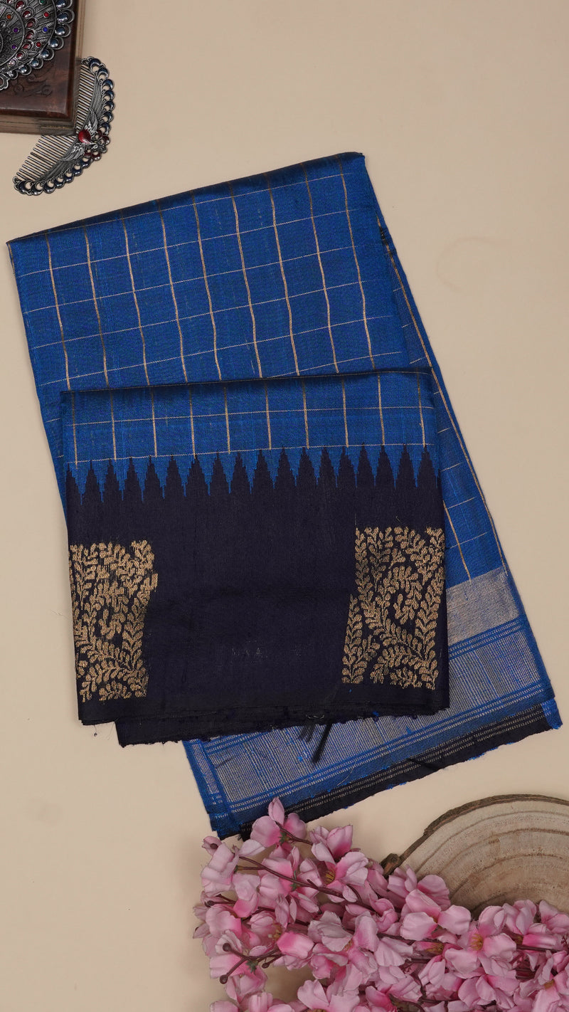 Elevate your look with Sulphiade Blue Jute Silk sarees featuring contrast zari & motifs border and all-over checks, ideal for festive and traditional occasions.
