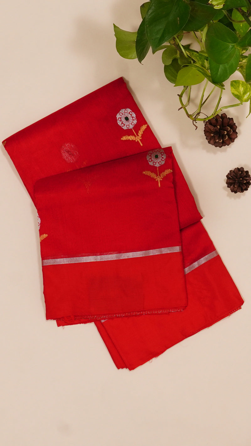 Bright Red Chanderi Silk Saree with Satin Self Border