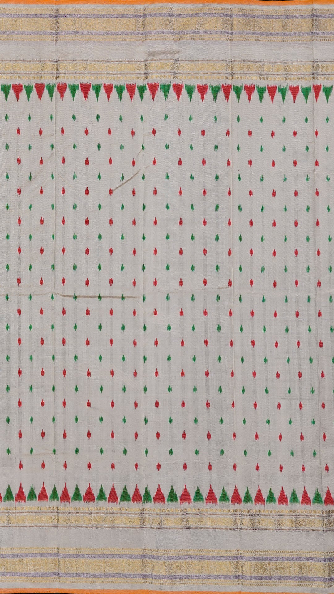Stunning rani pink Ikkath silk saree with big white allover buttas, featuring contrast butta and border with zari detailing—perfect for festive occasions.